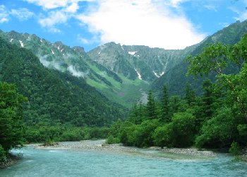 | 美しい穂高連峰から流れ下る清冽な梓川 | |
